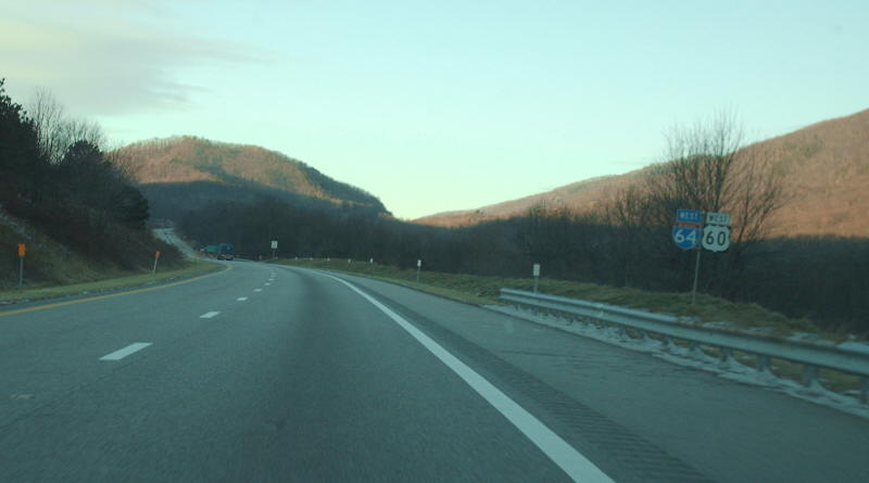 | The I-64 westbound look at Exit 50, where US 60 joins I-64. Photo by Mapmikey, taken January 26, 2007. | |