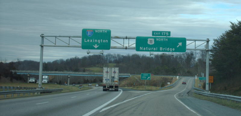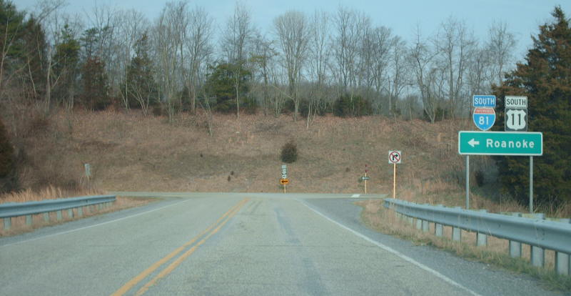 | From I-81 southbound at Exit 175 where US 11 joins I-81. Photo by Mapmikey, taken March 11, 2006. | |
