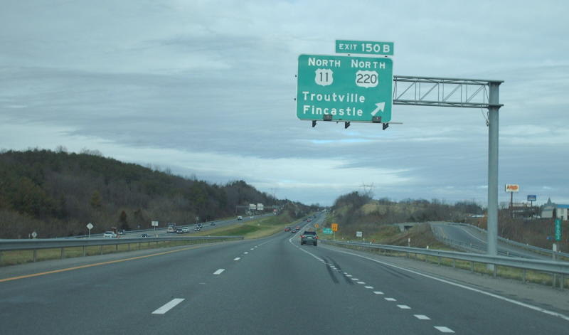 | From I-81 northbound at US 220, leaving I-81 at Exit 150. Photo by Mapmikey, taken January 26, 2007. | |