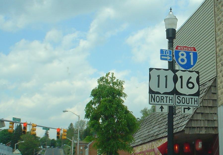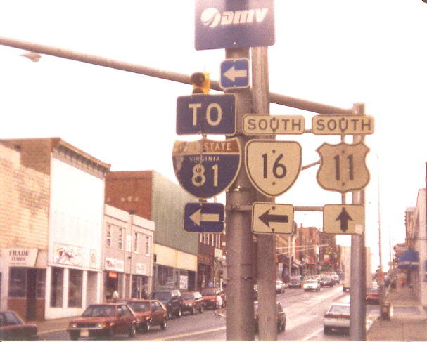| From US 11 north where VA 16 jumps on. Nice US 16 error shield... Photo by Chris E, taken May 2006. | |