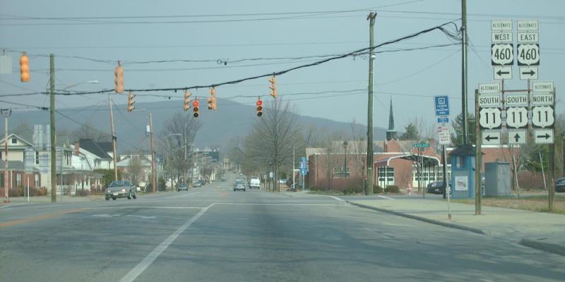 | Approaching the end of the duplex at VA 419, whose intersection is a little weird from this direction. A triplex is born! Photo by Mapmikey, taken October 14, 2006. | |