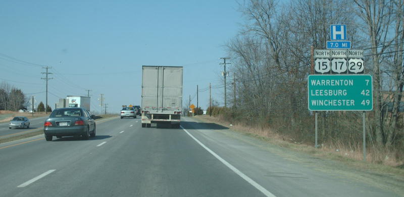 | From US 15-29 North where US 17 joins in. Photo by Mapmikey, taken March 9, 2007. | |