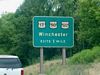 | The triplex begins ahead as US 11 north bears left. The VA 7 shield is on the wrong sign, but it was correct in this photo by Michael Summa. Photo by Mapmikey, taken February 1, 2006. | |