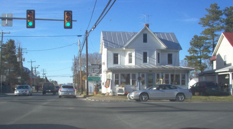 | The routes splitting in central Tappahannock. Photo by Mapmikey, taken February 19, 2006. | |