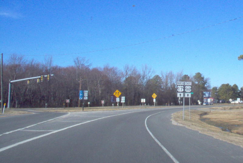 | Northbound US 17 at US 360. Photo by Mapmikey, taken February 19, 2006. | |