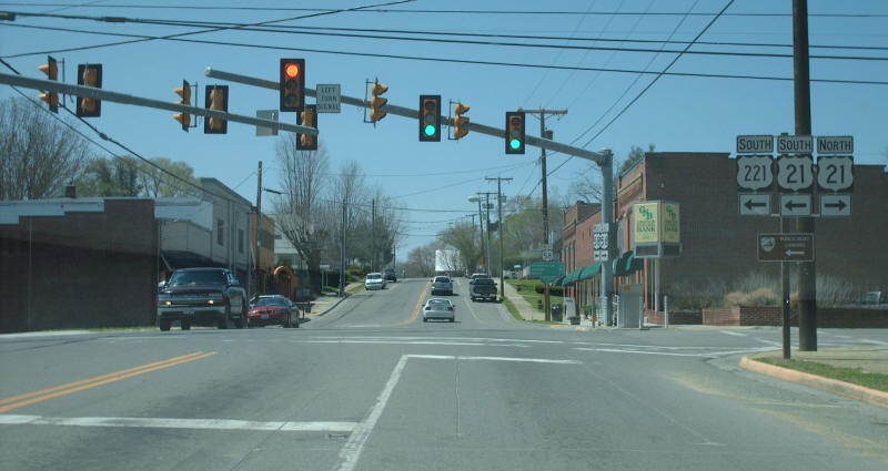 | From US 58-221 at US 21. US 221 switches overlaps here. For an older Michael Summa view with cutouts, click here Photo by Mapmikey, taken April 13, 2007. | |