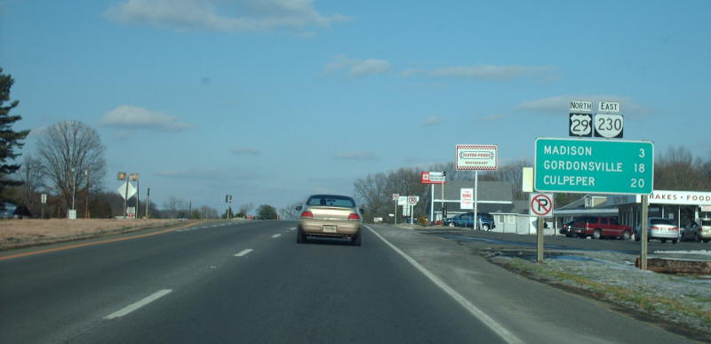 | On southbound US 29 where VA 230 heads west. Photo by Mapmikey, taken January 23, 2007. | |
