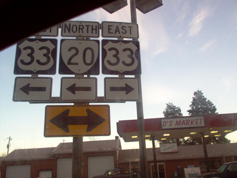 | On US 33 west approaching VA 20 split north. Photo by Mapmikey, taken May 27, 2006. | |