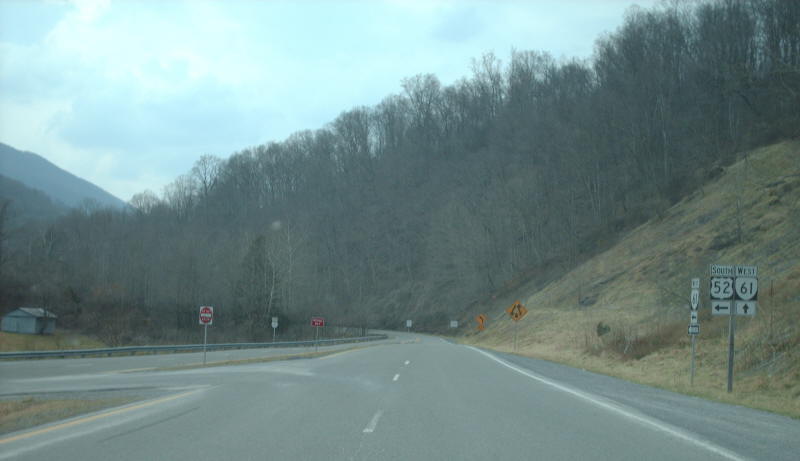 | From VA 61 west at US 52 in Rocky Gap. Photo by Mapmikey, taken March 10, 2007. | |
