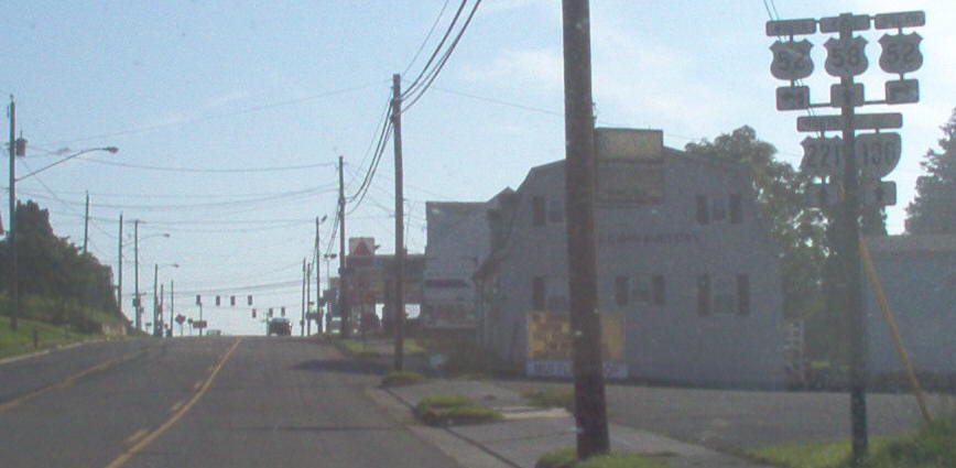| From US 21-221 north at US 58 which is posted to the far left. Photo by Mapmikey, taken April 13, 2007. | |