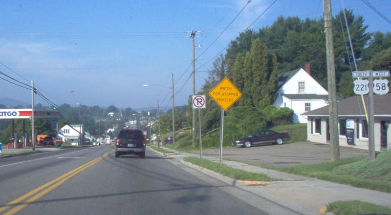 | From US 58 westbound where US 221 joins in. Photo by Mapmikey, taken July 16, 2006. |