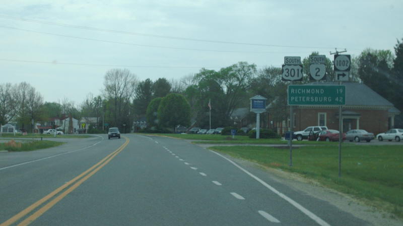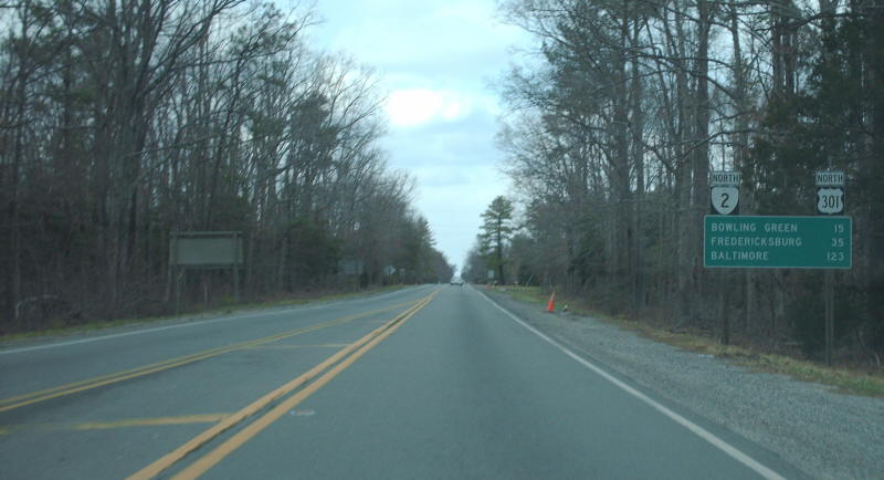 | On US 1-301 northbound approaching VA 2, where US 301-VA 2 begin their long pairing. Photo by Mapmikey, taken December 10, 2005. | |