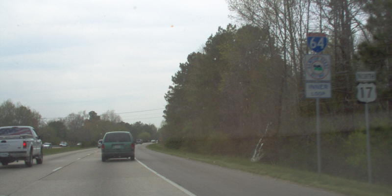 | The I-64/US 17 reassurance shields; I-64 is posted without direction banner. Photo by Mapmikey, taken April 7, 2006. | |