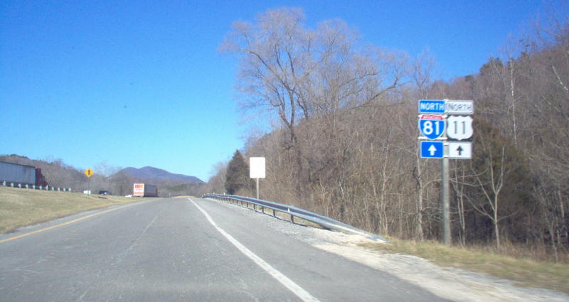 | From I-81 northbound at Exit 175 where US 11 leaves the freeway. Photo by Mapmikey, taken January 26, 2007. | |