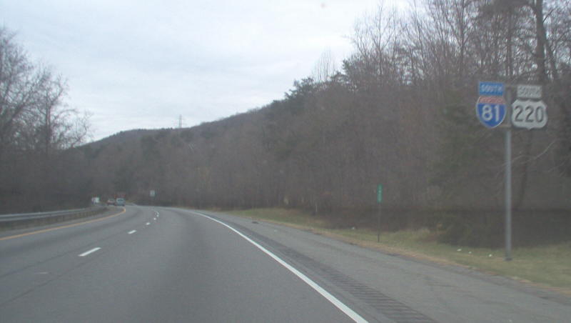 | From I-81 northbound at US 220, leaving I-81 at Exit 150. Photo by Mapmikey, taken January 26, 2007. | |