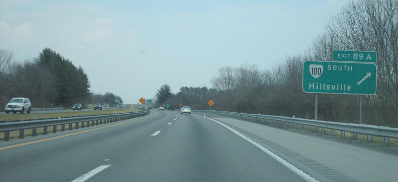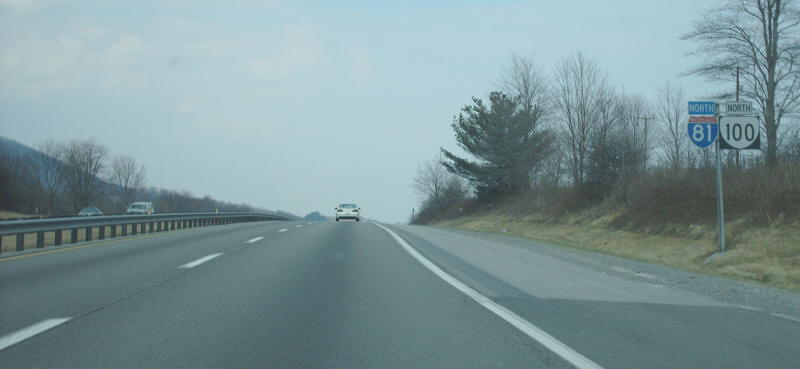 | From I-81 northbound where US 11 leaves and VA 100 climbs aboard. Photo by Mapmikey, taken March 10, 2007. | |