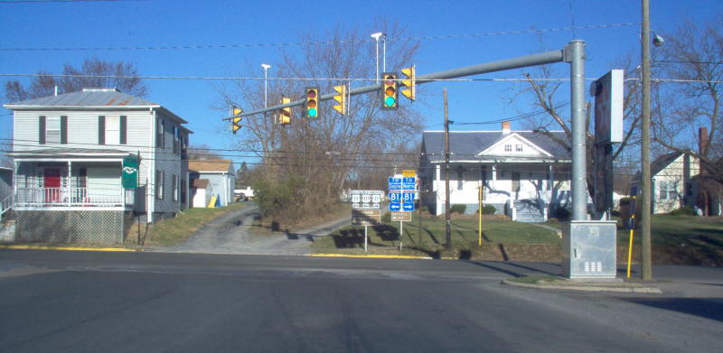 | From US 211 east at US 11. US 211 once began here heading straight ahead. Photo by Mapmikey, taken February 1, 2006. | |