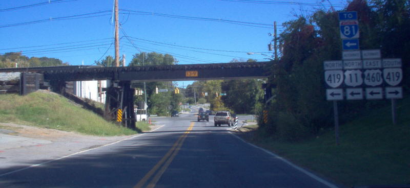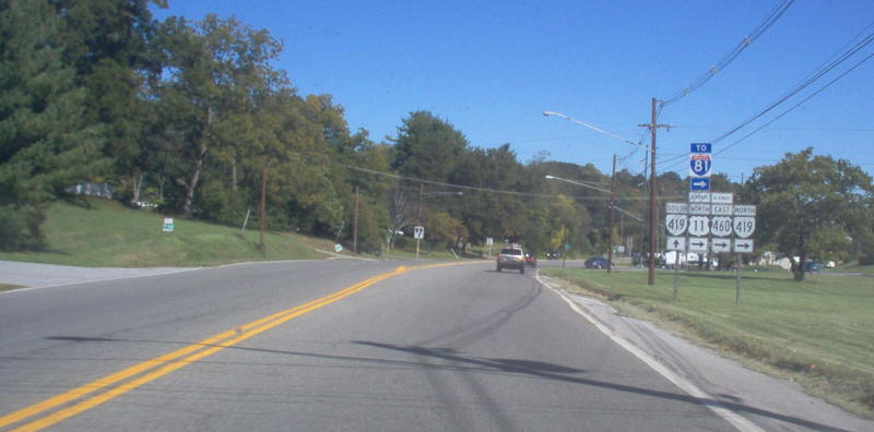 | From VA 419 north, where US 11 ALT joins US 460 and US 460 ALT ends. Photo by Mapmikey, taken October 14, 2006. |