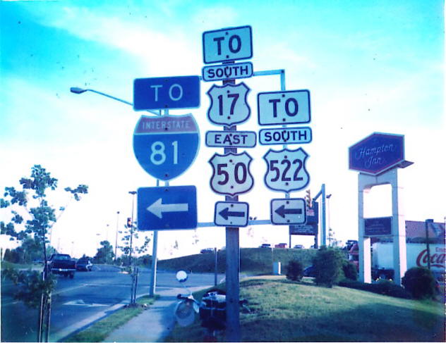 | Beginning north on the triplex at I-81. This is currently the last US 17 North posting. Photo by Mapmikey, taken February 1, 2006. | |