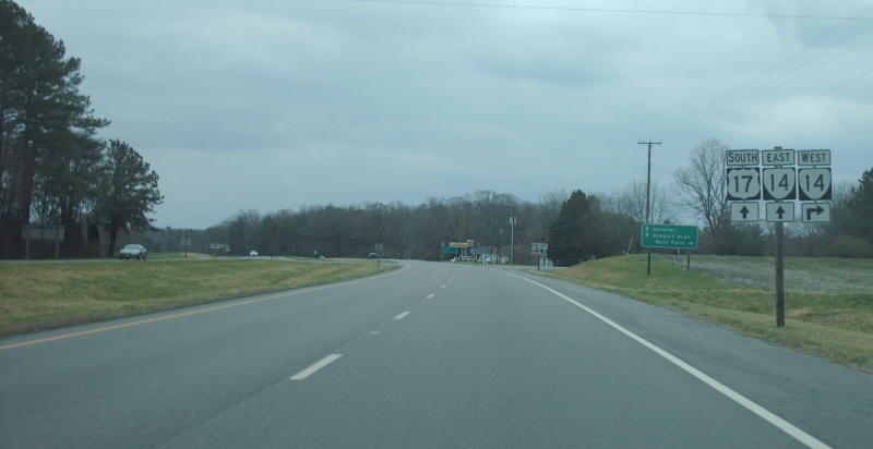 | Approaching VA 14 from US 17 south. Photo by Mapmikey, taken March 17, 2007. | |