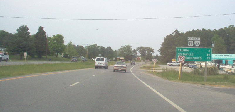 | On US 17 south where VA 33 joins in. Photo by Mapmikey, taken March 17, 2007. |