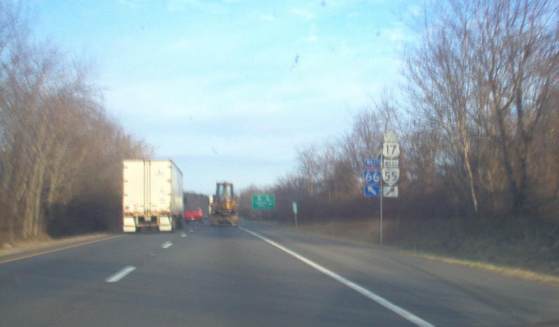 | Approaching the point where US 17/VA 55 leave I-66. Photo by Mapmikey, taken February 1, 2006. | |