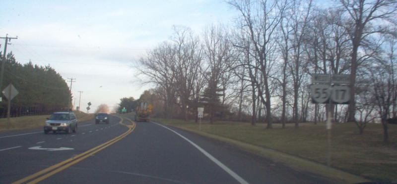 | Northbound US 17 where VA 55 heads west. Photo by Mapmikey, taken February 1, 2006. | |