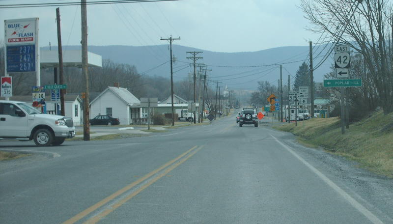 | From VA 42 west at US 52 in Bland. Photo by Mapmikey, taken March 10, 2007. | |