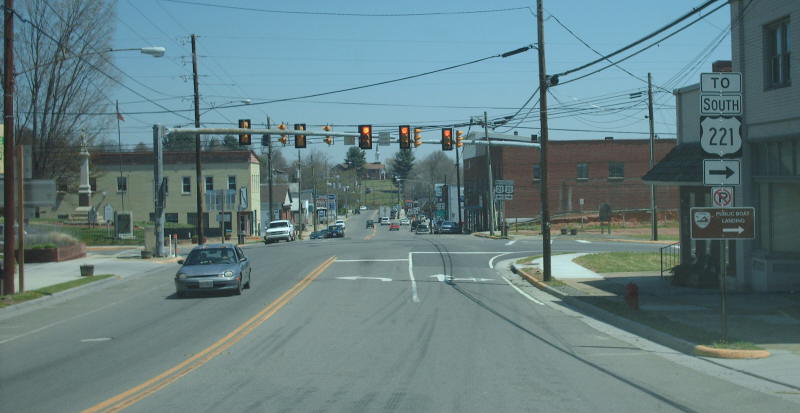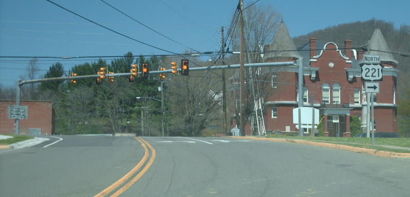 | From US 58-221 at US 21. US 221 switches overlaps here. For an older Michael Summa view with cutouts, click here Photo by Mapmikey, taken April 13, 2007. | |