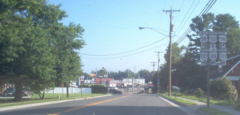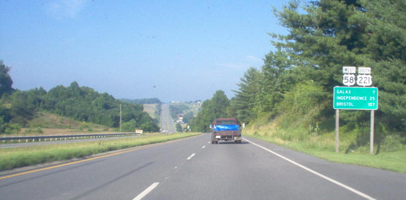 | From US 58 westbound where US 221 joins in. Photo by Mapmikey, taken July 16, 2006. |
