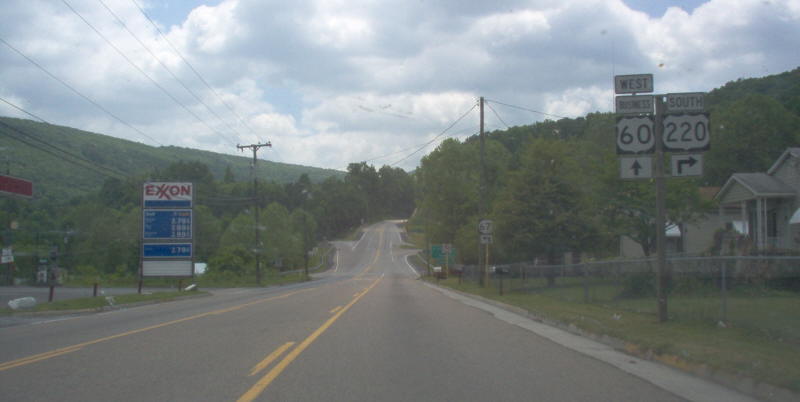| This is where the US 60 Bus/US 220 duplex begins, from I-64/US 60 west. Photo by Adam Froehlig, taken May 24, 2003. | |