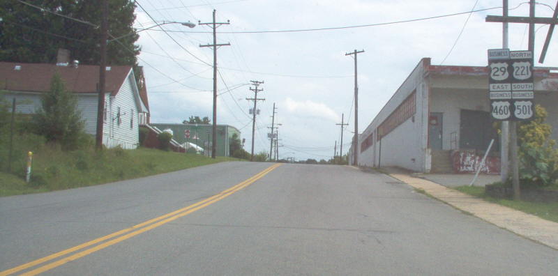 | The triplex approaching BUSINESS 29 and the end of US 221. This is the last US 221 North posting. Photo by Mapmikey, taken July 22, 2006. | |