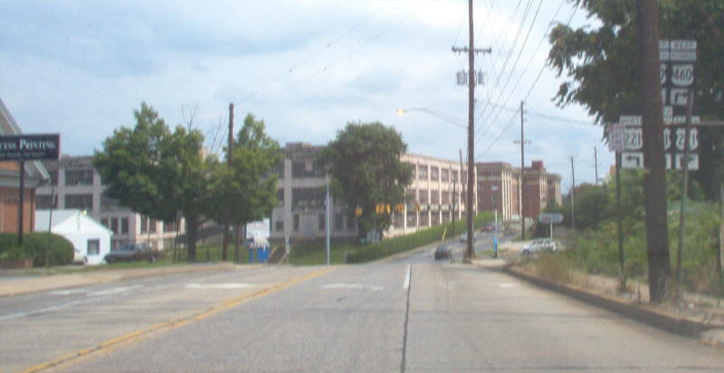 | From US 501 Bus south approaching US 221-US 460 Bus. The telephone pole is most inconveniently placed. Photo by Mapmikey, taken July 22, 2006. | |