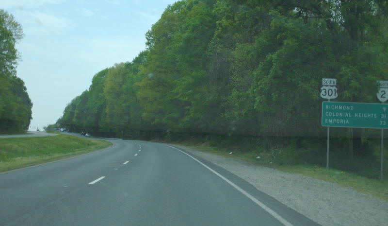 | On US 1-301 northbound approaching VA 2, where US 301-VA 2 begin their long pairing. Photo by Mapmikey, taken December 10, 2005. | |