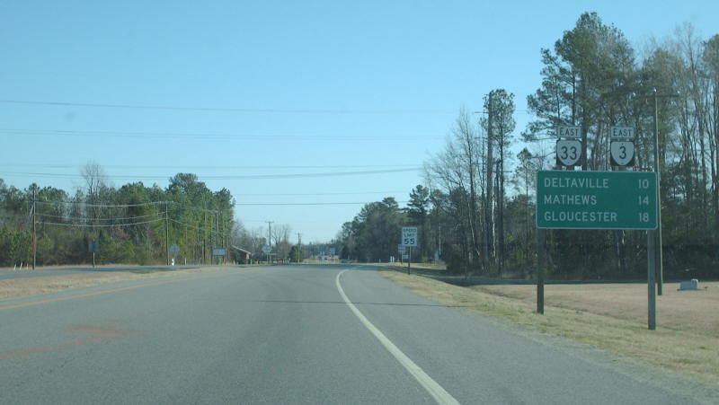| On VA 33 east approaching VA 3. Photo by Mapmikey, taken February 16, 2007. | |