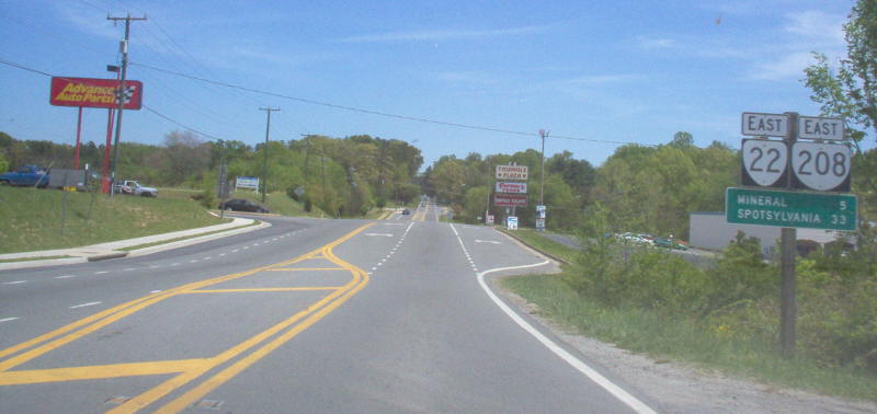 | From the US 522-VA 208 duplex ending at VA 22. Photo by Mapmikey, taken April 15, 2006. | |
