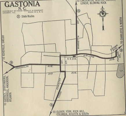 In Gastonia, NC 20 followed US 29-74 to Chester St (SB US 321), then north to E. Main Ave (this was Airline Ave back then which E. Main no longer connects to). NC 20 cut north on Polar St to today's NC 7.