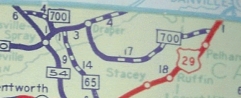 US 29 in Virginia is known as the Seminole Trail. Oddly, the 1952 Shell Map shows US 29-74 east of Kings Mtn as the Seminole Trail, but this name appears nowhere else on the map.... US 29 is now the step-child for I-85 for most of its existence, but is still nearly all 4-lane. US 29 north of Greensboro is slated to be part of the coming I-785. Improvements to the semi-freeway between I-85 Business and NC 150 have been ongoing for years now to facilitate that designation. A good example of early NC interstate configurations still exist on US 29 in places between Lexington and High Point |