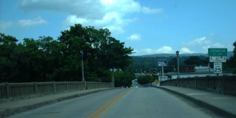 Eastbound US 60 entering the City of Covington from Alleghany County at the Jackson River. Photo by Mapmikey, taken July 3, 2009. |
