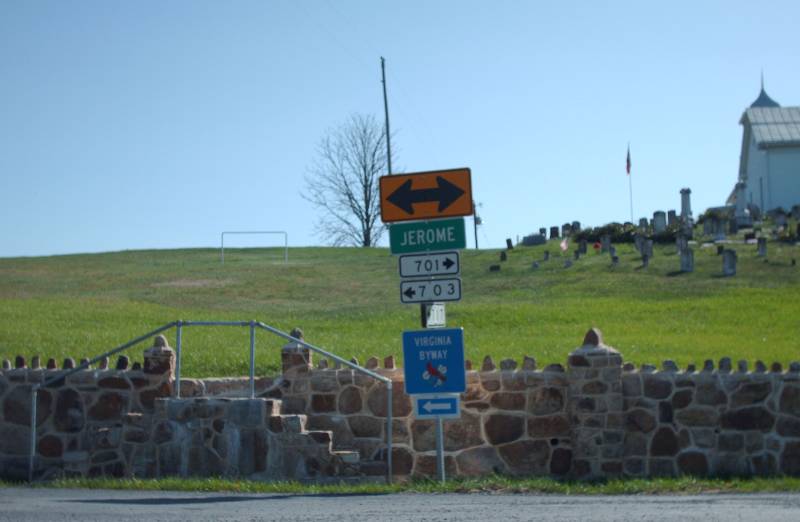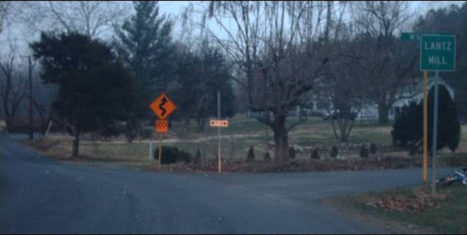 |  | Westbound SR 710 at Lantz Mill, Shenandoah County.  Photo by Mapmikey, taken December 2010. |