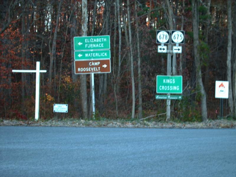|  | Northbound SR 675 at SR 678, Kings Crossing, Shenandoah County.  Photo by Mapmikey, taken November 2010. |
