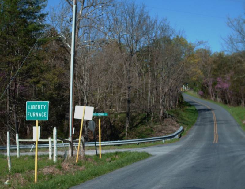 |  | Northbound SR 717 at SR 691, Liberty Furnace,
