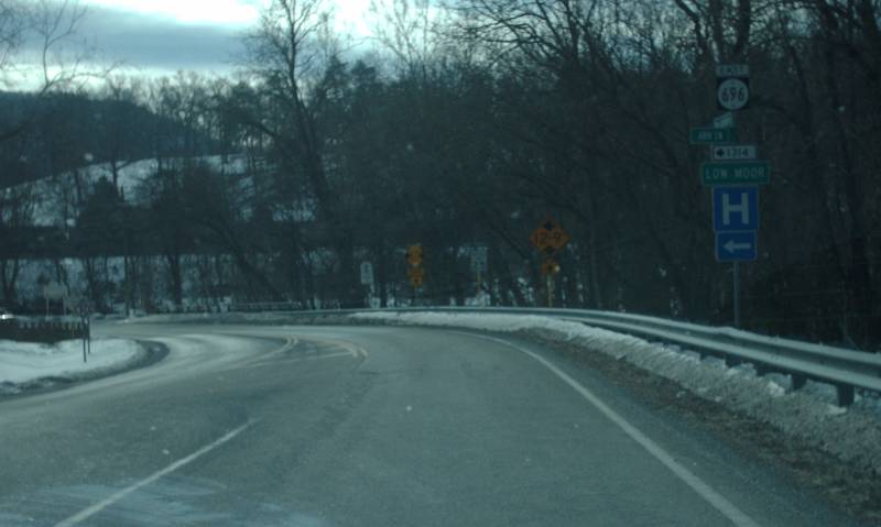 |  | Eastbound SR 696 (old US 60-220) at Low Moor, Alleghany County.  Photo by Mapmikey, taken January 11 2010. |