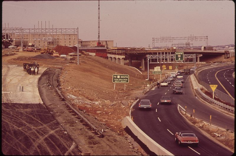 Photo: A scan from the 1973 Rand McNally approaching the mixing bowl southbound on I-95 before it was changed to I-395 (courtesy Douglas Kerr) |