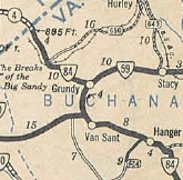 Comment: Given the terrain, VA 83 is a pretty good route from Pound to Grundy. East of Grundy the route to West Virginia is a little more winding.