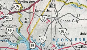 In Dec 1953, the CTB turned down a request from the Town Council of Cleveland to extend VA 82 west over SRs 600/615/616 to VA 64 (now VA 63) Hazel.