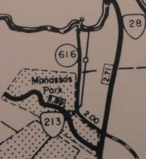 VA 201Y #1: Appears explicitly in the 1943 VDOT County Atlas but given how it was configured may go back to July 1933 as a renumbering of VA 628Y. It ran from then-VA 3/201 east to VA 201 at McNeals Corner. VA 3 was removed in the 1940's but maps show VA 201 using two corners of the triangle through at least 1961. Sometime after that it was renumbered as part of VA 201. |