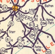 SC 413 appears from Iva to the Belton area 1949 Official | Previous SC 413's: