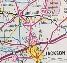 TN 5 Byp #2: Appeared around 1972 as a new bypass around the east and north of Humboldt. In 1983, TN 5 Bypass was renumbered as TN 366