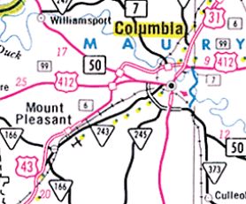 Around 1947, US 31 was moved onto its current alignment in Columbia, meaning US 43 was truncated from the courthouse one block further west on 7th St to the new US 31 on Garden St. Also in 1947, AASHO finally gave up on US 43 going to Clarksville and beyond, allowing Tennessee to renumber US 41W as US 41A. Interestingly, US 43 was shown on official Tennessee Route Logs with the full AASHO routing to Kentucky through at least 1962. About 1962, US 43 was removed from Alexander Springs Rd through Alexander Springs; Old Hwy 43 south of TN 240 In the 1970s, US 43 was removed from James Roy Rd and S Old Hwy 43 north of TN 20. Also about 1978, US 43 was put on its bypass of Mt Pleasant, tying back into the old road at the Maury County airport. It is unclear if the non-TN 166 part of the old route received a new state route designation but today it is part of TN 243. About 1989, US 43 was placed on more new alignment from the Maury County airport to US 412 west of Columbia, then followed US 412 east into Columbia. The connector to TN 243 at the airport became TN 6 CONN and the route to Columbia via Trotwood avenue became more TN 243. In 1999, US 43 was removed from Lawrenceville Hwy in the Sandy Hook area. In 2000, US 43 was given its full bypass of Columbia, leaving behind US 412 Bus and US 31 within Columbia, and changing US 43's north end from downtown Columbia to its current endpoint north of downtown.